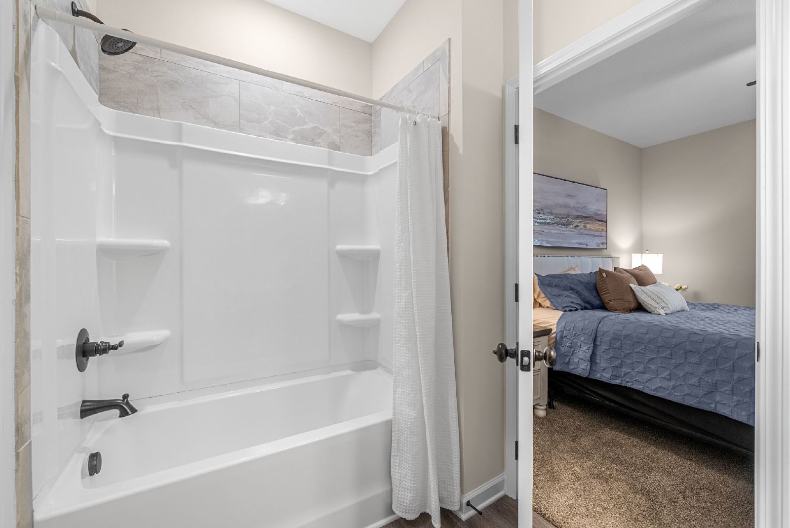 Check out our 2 bedroom 2 bathroom apartments located close to downtown Clarksville & minutes from Ft. Campbell. Built in 2024, these apartments have beautiful laminate flooring throughout with carpet in the bedroom. Kitchen comes equipped with stainless steel appliances that include a refrigerator, dishwasher, microwave, stove/oven. Beautiful Gray Cabinets and granite countertops throughout. Washer and dryer is provided. Primary bedroom has a large walk-in closet and double vanity sink in bathroom. Residents have access to the 24-hour fitness center, community pool, pet washing station and pet waste stations. Perfectly situated close to shopping, dining, and Fort Campbell, these apartments offer both comfort and convenience.